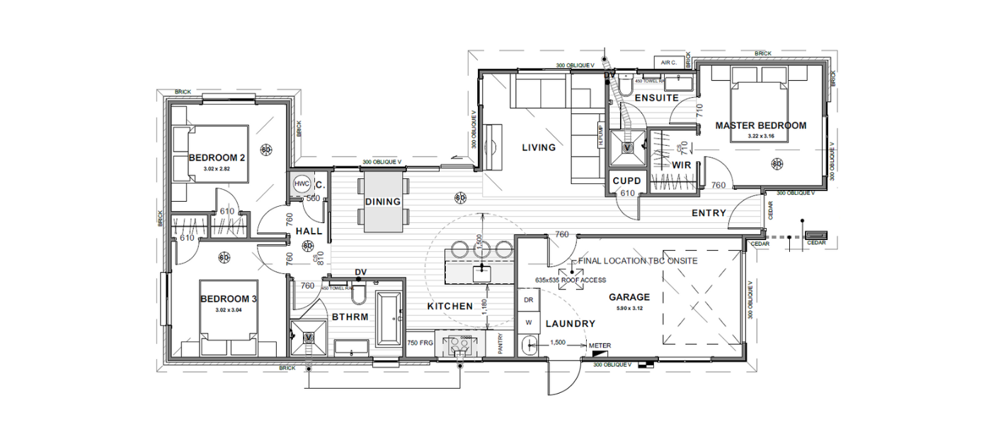 - Landscaping plan including outdoor living spaces, planting, clothesline, & letterbox