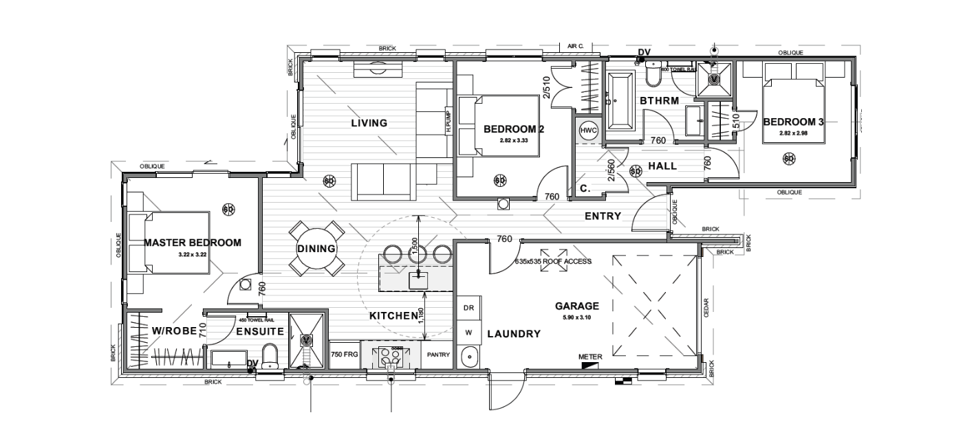 • Landscaping plan including outdoor living spaces, planting, clothesline, & letterbox
